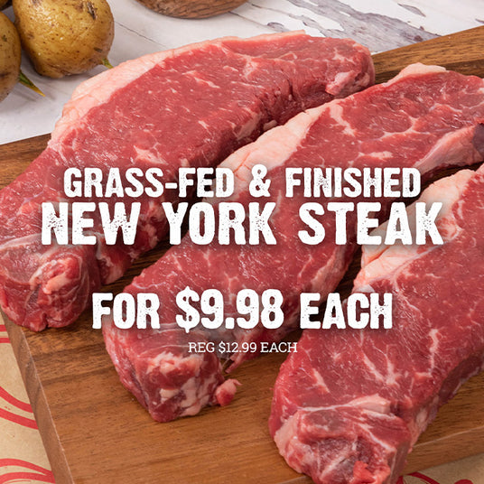 Grass-Fed New York Steaks (7oz) for $9.98 each